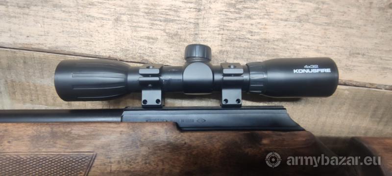 Opis: karabin sportowy Vostok CM-2 kal. .22 LR – klasyczna konstrukcja produkcji ZSRR, ceniona za prostotę i wysoką celność. Broń powtarzalna (bolt-action) z zamkiem czterotaktowym, trwała i niezawodna. Wersja jednostrzałowa, idealna do treningu i nauki strzelania. Wyposażony w ciężką lufę oraz długą linię celowniczą. Drewniane, solidne łoże sportowe. W zestawie luneta KONUSFIRE 4x32 – zapewnia wygodne i precyzyjne celowanie. Bardzo dobra celność na dystansach 25–50 m, minimalny odrzut. Idealny do strzelectwa rekreacyjnego i klubowego.