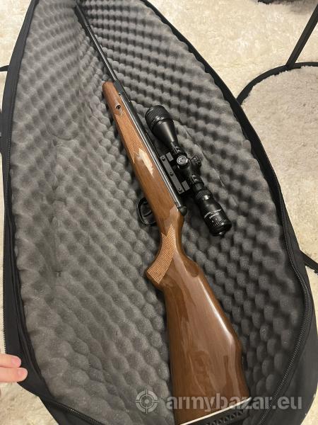 Opis: Wiatrówka Crosman Summit Remington 4.5mm. Stan idealny jak nowa, została użyta dosłownie kilka razy. Energia kinetyczna poniżej 17 J Zestaw wiatrówka +Pokrowiec +Śrut + luneta Polecam tel 795 856 288 Stylizowana na sztucer Remingtona, klasycznie łamana wiatrówka z lufą gwintowaną kaliber 4,5 mm oraz sprężyną Nitro Piston. Wystrzeliwuje śrut typu diabolo z prędkością 305 m/s. W odróżnieniu od sprężyn mechanicznych, tłok gazowy zastosowany w wiatrówce nie powoduje dużego hałasu. Ponadto dzięki systemowi Nitro Piston, napinanie sprężyny jest łatwiejsze i wymaga znacznie mniejszego nakładu sił w porównaniu do wiatrówek ze sprężyną mechaniczną.
