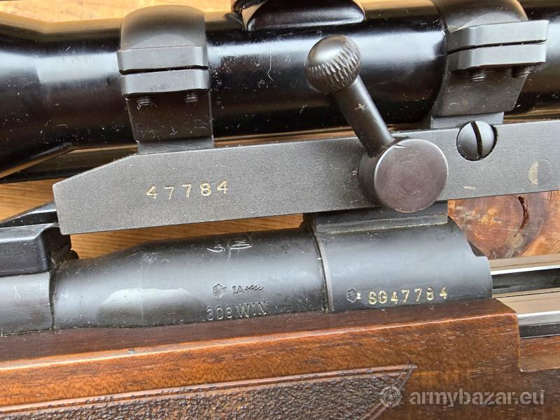 Opis: Karabin powtarzalny Mauser SP 66, kal.. 308 Win. Karabin wyborowy policyjnych oddziałów specjalnych w 13 krajach (Niemcy, Włochy, Izrael). Broń zgodna numerycznie z oryginalną optyką Zeiss Diavari DA 1,5-6×42. Ciężka lufa samonośna kuta na zimno w stanie bardzo dobrym – lustro. Długość lufy: 730 mm. Waga: 6 kg. Produkcja Mauser-Werke, lata 1976-1985 w ilości około 5000 szt. Lufa zakończona tłumikiem płomienia. Stały magazynek 3 nabojowy. Regulowana baka policzkowa. W komplecie oryginalna walizka transportowa, karton po optyce oraz montaż pod noktowizor. Więcej zdjęć na stronie www.mkbarmory.pl Masz pytania: tel. +48 786 953 929 Na zakup wymagana jest promesa. Możliwa dostawa zakupionej broni