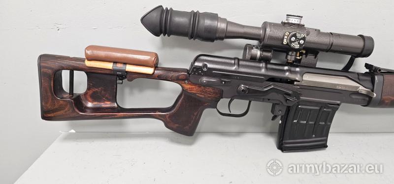 Opis: Karabin wyborowy SWD – Legendarna Snajperska Wintówka Dragunowa. Produkcja 1979 rok – Iżewsk. Kaliber 7,62x54R. Lufa w stanie bardzo dobrym – lustro. Rzadka wersja wojskowa i to w takim stanie zachowania. W komplecie oryginalna optyka PSO wraz z pokrowcem. Ładownica z wyciorem i 5 magazynkami. Pas nośny oraz dwójnóg. Więcej zdjęć na stronie www.mkbarmory.pl Masz pytania: tel. +48 786 953 929 Na zakup wymagana jest promesa. Możliwa dostawa zakupionej broni.