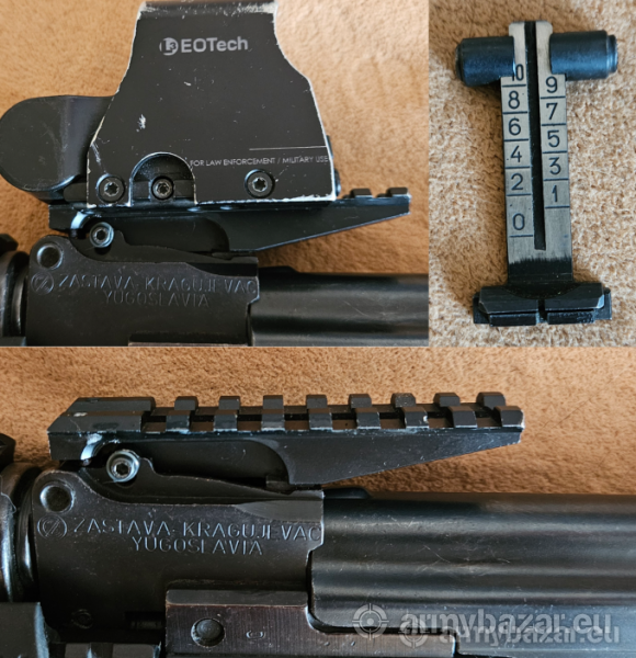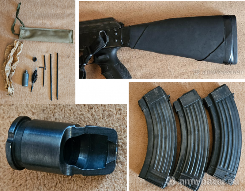 Opis: Karabinek Zastava M70B1 -Yugol Kal. 7,62x39. Kupiony nowy. Pierwszy właściciel. Przebieg ok.1k, czyszczony po każdym strzelaniu. Stan bardzo dobry. Lufa, tłok, zamek -stan dobry, z naturalnymi śladami pracy. Modyfikacje: Łoże wymienione na aluminiowe risowane. W miejscu szczerbinki -podstawa ris pod koli. Ergonomiczny chwyt pistoletowy. Poszerzony przycisk zwalniania maga i Selektor ognia. Wszystkie oryginalne elementy w komplecie! Kolba drewniana od nowości zabezpieczona gumową otuliną =bez uszkodzeń. W komplecie 3 metalowe magi, zestaw do czyszczenia broni i urządzenie wylotowe. Sprzedaję bez pasa, kolimatora. Więcej zdjęć na maila. Pruszków. 507-809-20-jeden.