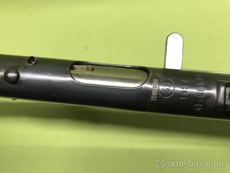 Opis: Egzemplarz w stanie bardzo dobrym, prawdopodobnie przeszedł remont o czym świadczyć może dodatkowe oznaczenie naniesione powyżej kodu numerycznego zakładów Wifama. Od spodu naniesione zostało oznaczenie AMW PL. Lufa nowa, w stanie idealnym. W komplecie pełne ukompletowanie, tj. ładownica, 4 magazynki, pas oraz wycior. Broń przerabiamy z maksymalnym poszanowaniem walorów kolekcjonerskich - obecne są wyłącznie fabryczne oznaczenia. Strzela jak w oryginale - z zamka otwartego. Więcej zdjęć na: www.fmjspj.pl
