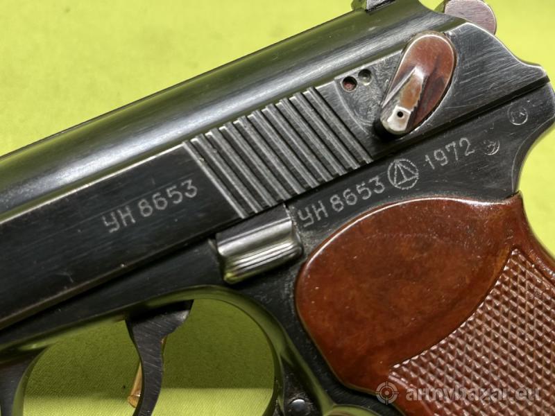 Opis: Pistolet PM Makarow, kal. 9X18mm Mak. Stan lufy idealny - lustro. Zewnętrznie lekko noszony, w komplecie pistolet, dwa magazynki i kabura. Broń wyprodukowana w ZSRR - Iżewsk, w roku 1972.Należy zwrócić uwagę na fakt, że nasze egzemplarze nie były nigdy remontowane tj. przeszlifowanie i oksydowane na nowo, co ma miejsce w przypadku większości Makarowów występujących na polskim rynku. Na terenie Polski dowóz do klienta w cenie.