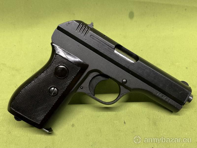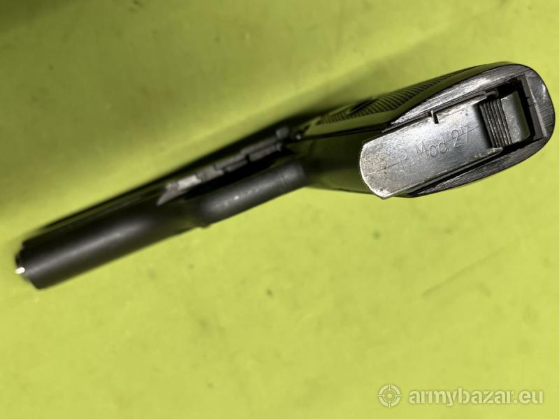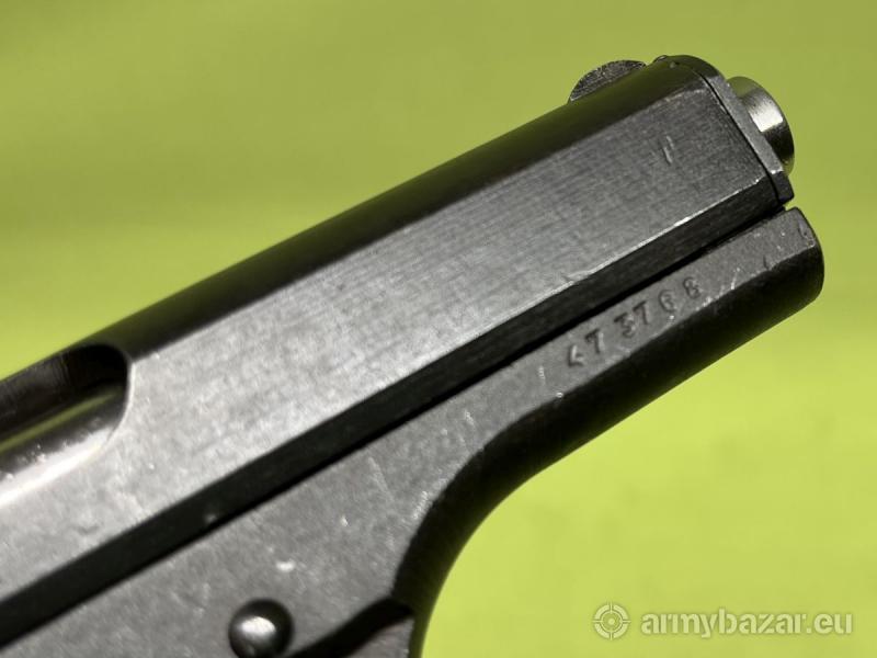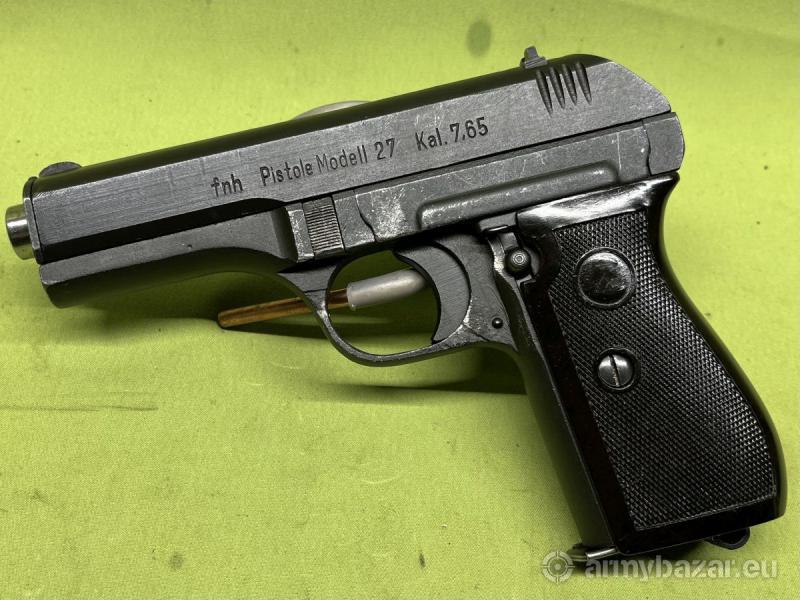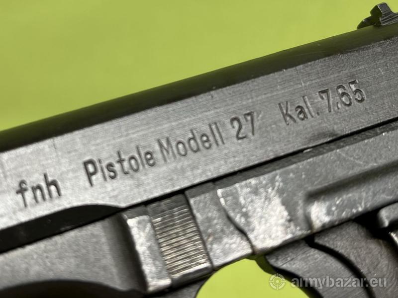 Opis: Pistolet CZ P27 (fnh), kal. 7.65 Browning wyprodukowany przed 1945 r. Po zajęciu Czechosłowacji przez Niemcy w połowie marca 1939 r. pistolet ten trafił na wyposażenie niemieckich sił zbrojnych i policji pod oznaczeniem P27.Sprzedawany egzemplarz znajduje się w bardzo dobrym stanie technicznym. Lufa w stanie idealnym - lustro. Obecne niemieckie stemple odbioru wojskowego Waffenamty. Magazynek oryginalny - wojenny, oznaczony MOD 27.Na terenie Polski dowóz do klienta w cenie