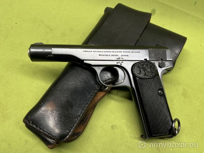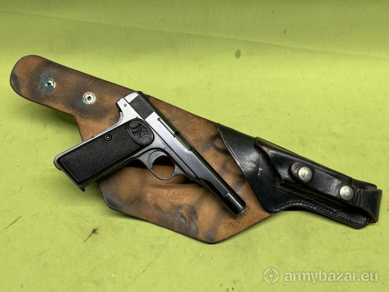 Opis: Pistolet FN 1910/22 w kalibrze 7,65 Browning. Stan bardzo dobry, mechanicznie bez zarzutu, lufa idealna - lustro. Broń jest zgodna numerycznie, produkcja powojenna belgijskich zakładów w Herstal, wariant z zaczepem do koalicyjki na rękojeści. W komplecie z pistoletem jest magazynek i oryginalna kabura. Na terenie Polski dowóz do klienta w cenie.
