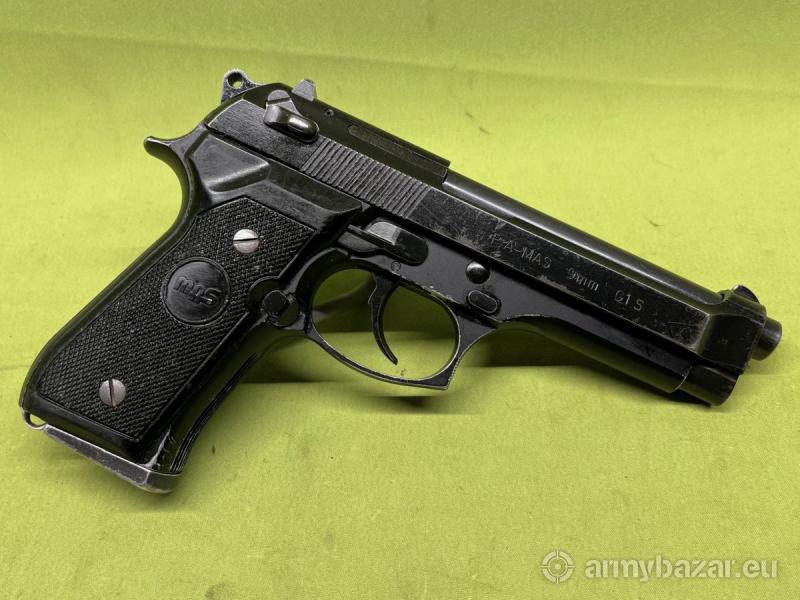 Opis: Pistolet samopowtarzalny PAMAS G1S w kalibrze 9x19mm to wersja pistoletu Beretta 92 wyprodukowana na licencji przez Manufacture d’Armes de St-Etienne dla potrzeb francuskich sił zbrojnych. Przedstawiony na zdjęciach pistolet znajduje się w stanie bardzo dobrym, lufa w stanie idealnym - lustro, z nienaruszoną powłoką chromu. Oferowane przez nas pistolety wyselekcjonowaliśmy ręcznie z większej partii, wybierając egzemplarze z możliwie najmniejszym przebiegiem. W komplecie zestaw akcesoriów widocznych na zdjęciach: pudełko, dwa magazynki, urządzenie do ładowania magazynków, wycior, szczotka, atrapa lufy do treningu bezstrzałowego, instrukcja. Na terenie Polski dowóz do klienta w cenie.