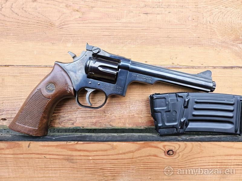 Opis: DOSTAWA - 22 Maja: Warszawa, Białobrzegi, Kraków, Katowice, Łódź ! Rewolwer Dan Wesson M12 kal.. 357 Magnum Produkcja Monson, MASS, USA w latach 1968-1970. Jeden z pierwszych modeli produkowanych przez Dan Wesson. Bębenek 6-nabojowy, system SA / DA. Przewód lufy - lustro - długość 6" - 15,24 cm. W komplecie dwa oryginalne chwyty: standardowy i anatomiczny. Przyrządy celownicze: muszka i szczerbinka - regulowane. Lokalizacja Brzoza pod Bydgoszczą. Tel. 790-280-454