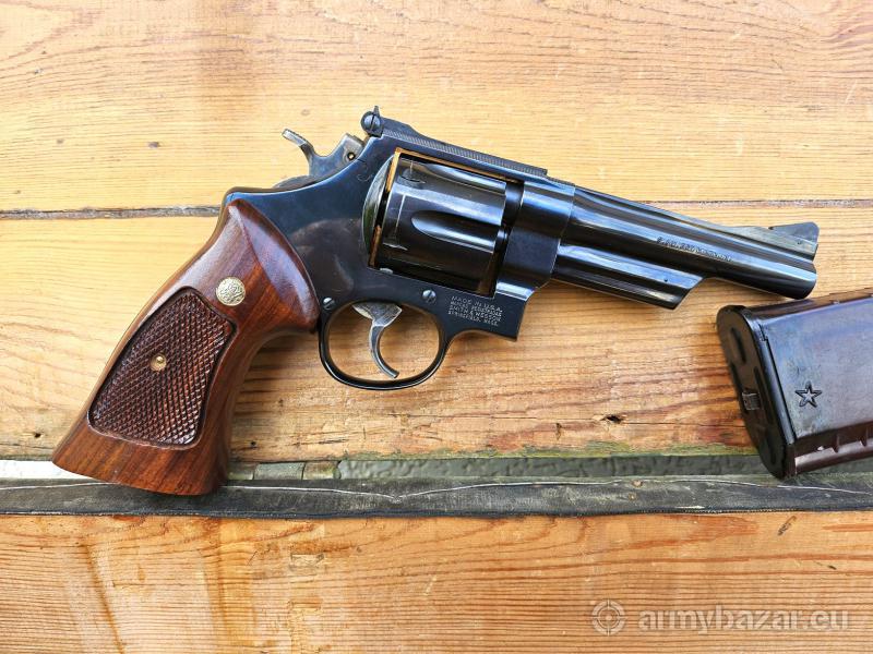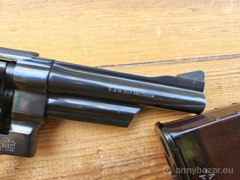 Opis: DOSTAWA - 22 Maja: Warszawa, Białobrzegi, Kraków, Katowice, Łódź ! Rewolwer Smith & Wesson 27 kal.. 357 Magnum /. 38 Special. Produkcja MASS, USA - 1989 r.. Pierwszy amerykański rewolwer na amunicję. 357 Magnum. Bębenek 6-nabojowy, system SA / DA. Przewód lufy - lustro - rzadka wersja o długości długość lufy 5" - 12,7 cm. W komplecie oryginalne pudełko z wyciorem i dokumentami. Przyrządy celownicze: muszka i szczerbinka - regulowane. Lokalizacja Brzoza pod Bydgoszczą. Tel. 790-280-454