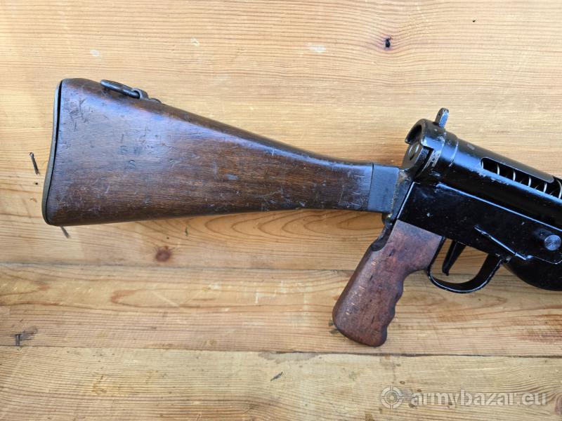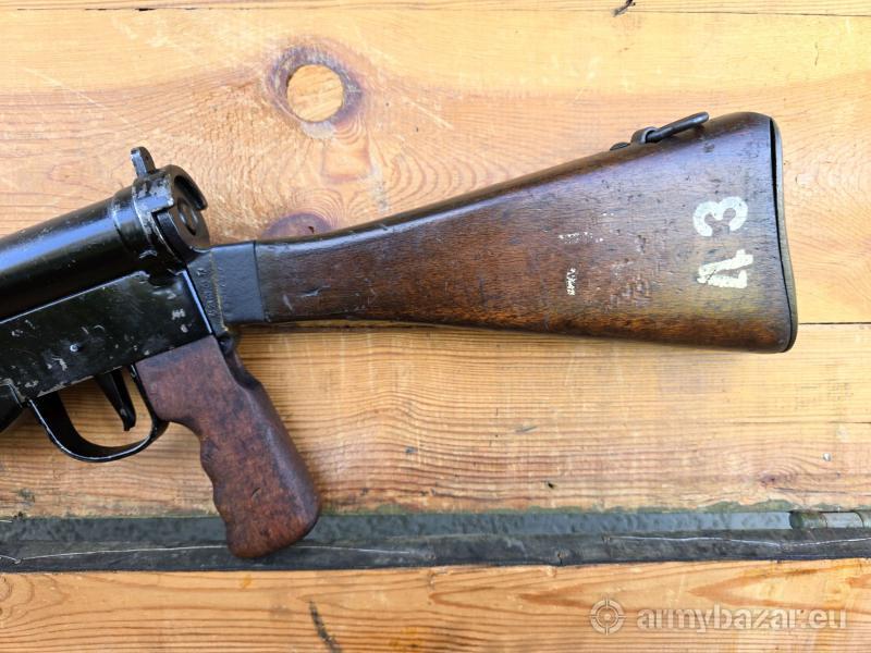 Opis: DOSTAWA PRZEZ CAŁĄ POLSKĘ ! Pistolet samopowtarzalny Sten Mk V, kal. 9x19 Słynny Brytyjski "STEN" w wersji MK5 z chwytem pistoletowym oraz drewnianą kolbą. Przewód lufy w stanie bardzo dobrym - lustro. Produkcja 1944 r. RTL / Royal Theale Manufacture. W komplecie jeden oryginalny magazynek. Broń w oryginalnej powłoce. Broń wytworzona jako samopowtarzalna - dodatkowe oznakowanie jest schowane. Lokalizacja Brzoza pod Bydgoszczą. Tel. 790-280-454. - www.olimp-arms.com, https://t.me/olimparms