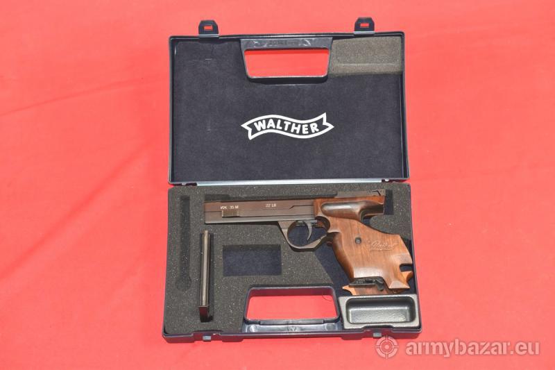 Opis: #7431 Pistolet sportowy bocznego zapłonu IŻ-35M kal. 22lr. Produkcja radziecka / rosyjska na rynek niemiecki - stąd walizka Walthera, z którą był już dystrybuowany w Niemczech (oraz w innych krajach europejskich). Część takich IŻ-y dostarczano z Rosji w stanie białym, bez oznaczeń - i te egzemplarze wykańczano, z pewnymi modyfikacjami, w fabryce Walthera - ale już jako produkt niemiecki - pod oznaczeniem Walther KSP 200. Egzemplarz sprawdzony i wypróbowany przez rusznikarza. Stan ogólny bardzo dobry - obecne są ślady normalnej, umiarkowanej eksploatacji. Przewód lufy idealny, lustro. BROŃ DOWOZIMY NA TERENIE CAŁEGO KRAJU - RAZ W MIESIĄCU