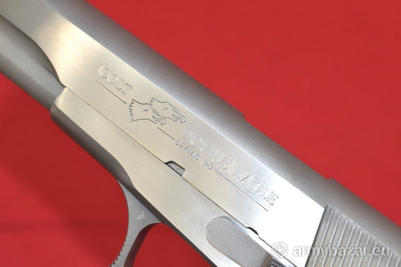 Opis: #7599 Pistolet Colt MKII SERIES'90 Double Eagle produkcji USA. Kaliber 45ACP. Model produkowany w latach 1989-1997. Zewnętrznie przypomina klasycznego 1911, jednakże jest to inna konstrukcja, opracowana osobno. Oferowany tutaj egzemplarz to Double Eagle - czyli wariant pełnowymiarowy, produkowany obok dwóch zmniejszonych wariantów tego modelu (Double Eagle Combat Commander oraz Double Eagle Officers). Stan bardzo dobry - wykazuje ślady normalnej, umiarkowanej eksploatacji. W całości wykonany ze stali nierdzewnej. Magazynek o pojemności ośmiu naboi, system SA/DA. Przewód lufy: fabryczny. BROŃ DOWOZIMY NA TERENIE CAŁEGO KRAJU - RAZ W MIESIĄCU