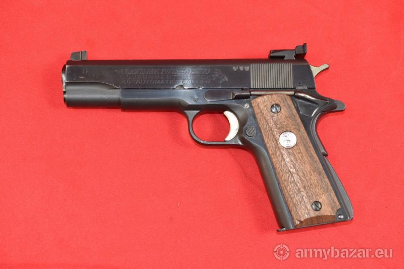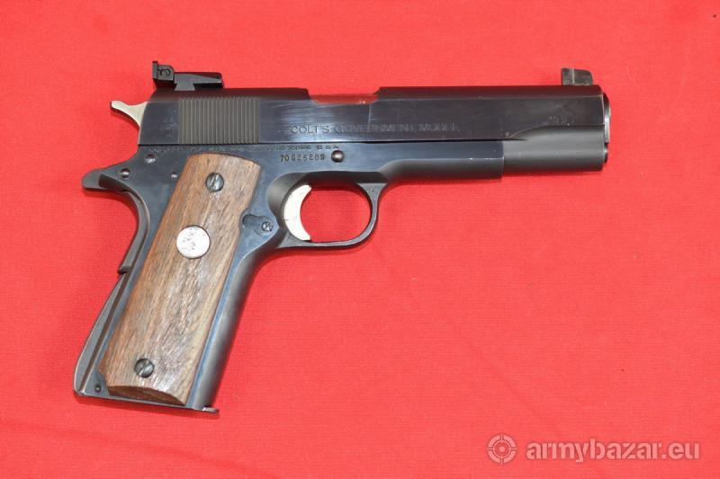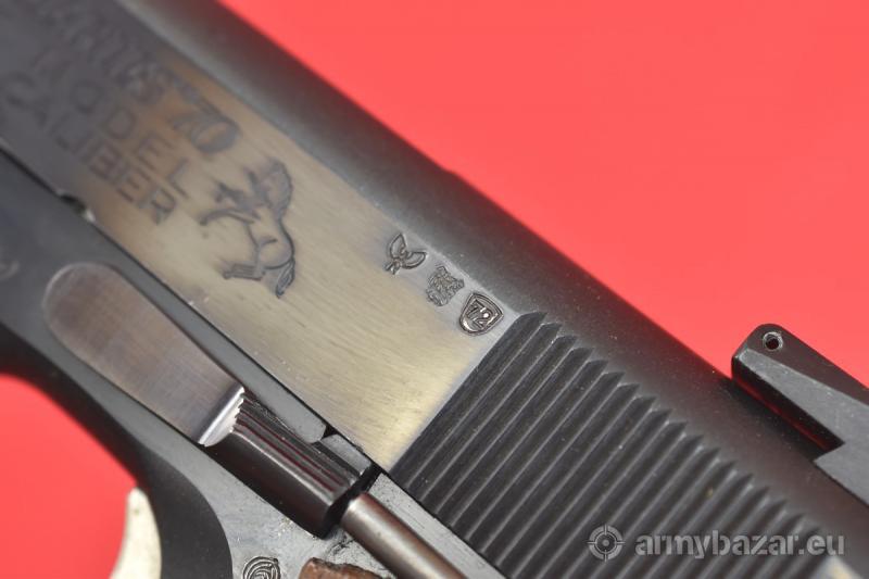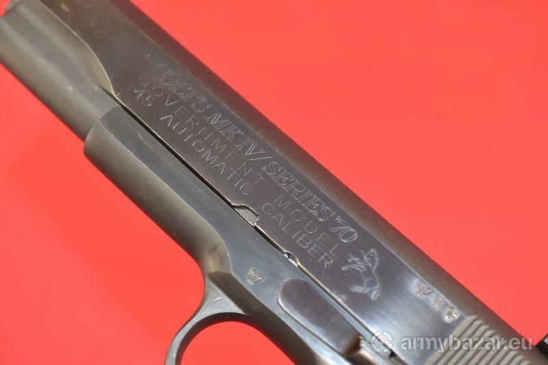 Opis: #7602 Pistolet Colt MKIV SERIES'70 Government Model. Kaliber .45ACP. Model produkowany w latach 1970-1983. Oferowany tutaj egzemplarz ma stemple atestu nitro z roku 1972. Stan bardzo dobry, bardzo mało używany egzemplarz. Fabryczna, pięknie zachowana oksyda. Obecne drobne zarysowania i przetarcia wynikające z niezbyt intensywnej eksploatacji. Muszka mikrometryczna. Egzemplarz sprawdzony i wypróbowany przez rusznikarza. Przewód lufy w stanie bardzo dobrym - czysty, jasny. Obecne są drobne ślady używania. BROŃ DOWOZIMY NA TERENIE CAŁEGO KRAJU - RAZ W MIESIĄCU