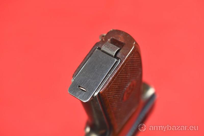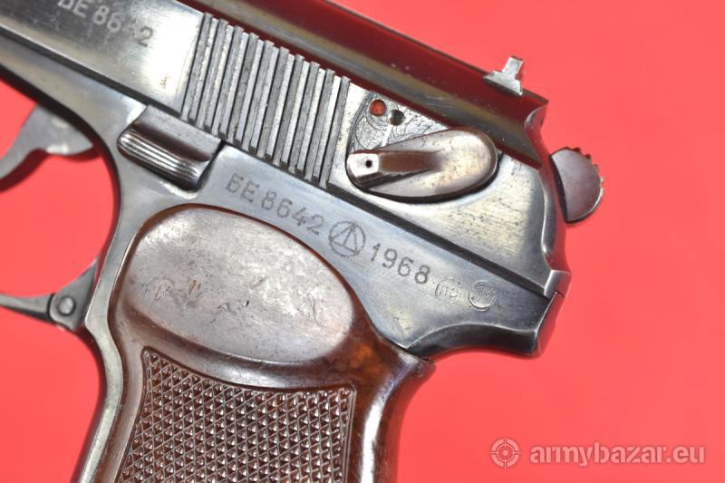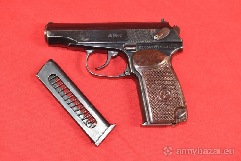 Opis: #7644 Radziecki pistolet PM Makarow kal. 9 mm Makarow produkcji zakładów w Iżewsku z roku 1968. Oksyda oryginalna, obecne są wyłącznie stemple fabryczne - brak późniejszych atestów, stempli importowych itd. W komplecie dwa magazynki - jeden zgodny numerycznie z bronią, drugi niezgodny. Egzemplarz powycierany od noszenia w kaburze. Sprawdzony i wypróbowany przez rusznikarza. Oksyda fabryczna. Przewód lufy: w stanie idealnym. BROŃ DOWOZIMY NA TERENIE CAŁEGO KRAJU - RAZ W MIESIĄCU