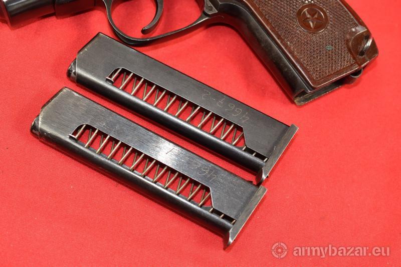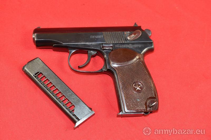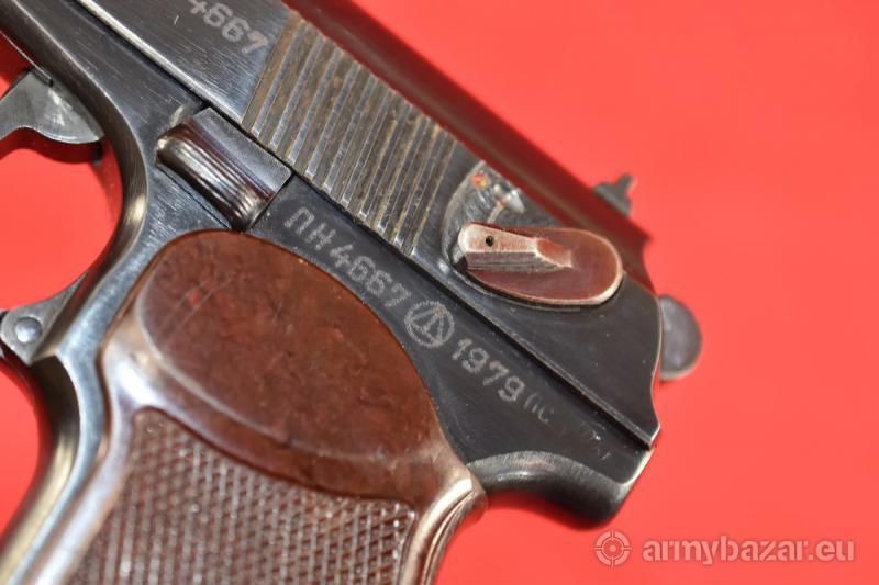 Opis: #7649 Radziecki pistolet PM Makarow kal. 9 mm Makarow produkcji zakładów w Iżewsku z roku 1979. Oksyda oryginalna, obecne są wyłącznie stemple fabryczne - brak późniejszych atestów, stempli importowych itd. W komplecie dwa magazynki - oba zgodne numerycznie z bronią. Przewód lufy: w stanie idealnym. BROŃ DOWOZIMY NA TERENIE CAŁEGO KRAJU - RAZ W MIESIĄCU