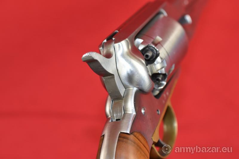 Opis: #7659 Rewolwer rozdzielnego ładowania Remington Army kal. 44. Produkcja włoskiej firmy FAP (Pietta) z roku 1989. Egzemplarz wykonany ze stali nierdzewnej (inox). Sprawdzony i wypróbowany przez rusznikarza. Przewód lufy: fabryczny. Osiowość - 100%. PRODUKT DOSTĘPNY WYSYŁKOWO DLA OSÓB PEŁNOLETNICH NA ZAKUP TEJ BRONI NIE JEST WYMAGANE ZEZWOLENIE