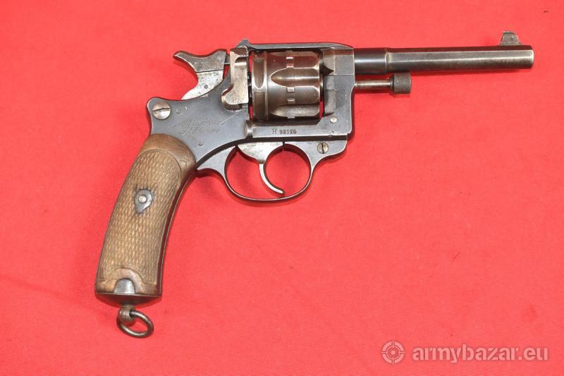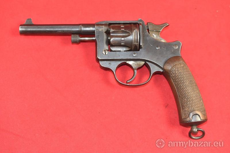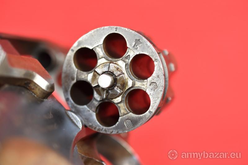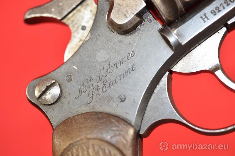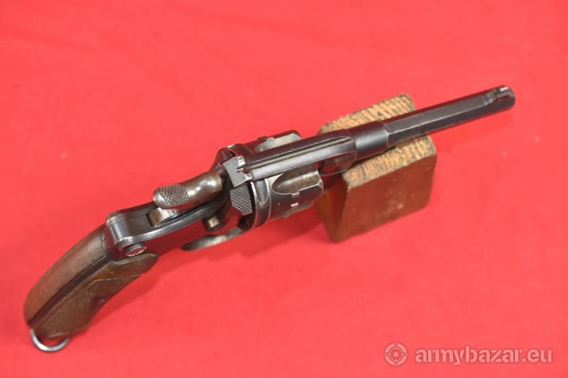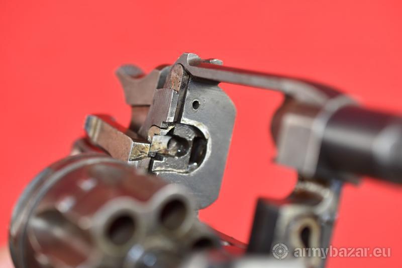 Opis: #7662 Rewolwer armii francuskiej Lebel Mle1892 kal. 8x27R. Egzemplarz w stanie oryginalnym - powycierany, podrapany od używania, w wielu miejscach z nalotem korozji / patyny. Zachowana oksyda jest fabryczna. Kurek, spust, blokada bębna - w stanie "białym", czyli tak jak robiła to fabryka. Przewód lufy: jasny, czysty, gwint kompletny i ostry na całości. Jednakże, po przyjrzeniu się, widać w kilku miejscach delikatne wżery. BROŃ DOWOZIMY NA TERENIE CAŁEGO KRAJU - RAZ W MIESIĄCU
