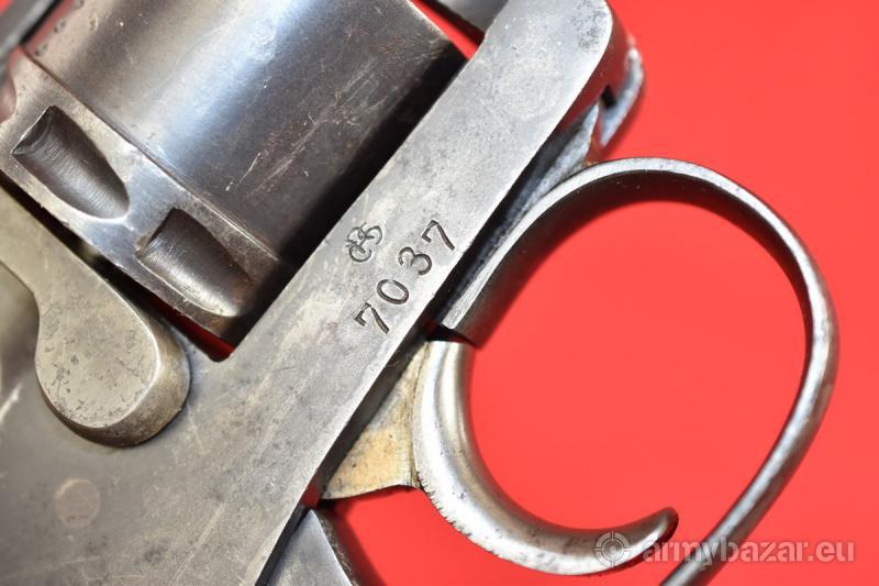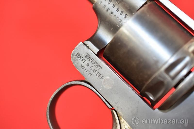 Opis: #7664 Rewolwer Rast & Gasser M1898 kal. 8,1x27. Standardowy rewolwer armii austrowęgierskiej do momentu wprowadzenia pistoletu Steyr 1912. Oczywiście szeroko używany w okresie I wojny światowej. Oferowany tutaj egzemplarz został jednak wyprodukowany tuż po zakończeniu I wojny światowej (o czym świadczy stempel odbioru z roku 1919) i jest jednym z 4000 sztuk sprzedanych w roku 1919 nowo powstałemu państwu czechosłowackiemu. Na szkielecie obecny jest czeski stempel "CSR 7037". OPrzewód lufy: gwint kompletny, ostry - jednak w bruzdach obecne są wżery. Nadal oczywiście można z tego rewolweru bez problemu strzelać. BROŃ DOWOZIMY NA TERENIE CAŁEGO KRAJU - RAZ W MIESIĄ