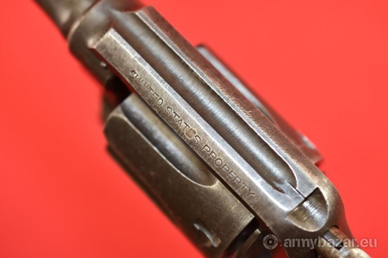 Opis: #7668 Klasyczny amerykański rewolwer Smith & Wesson Victory. Kaliber .38S&W. Produkcja dla armii amerykańskiej - o czym świadczy stempel odbioru "flaming bomb" oraz napis "United States Property". Fosfat oryginalny, fabryczny - co za tym idzie słaby, powycierany, przemieszany z liszajami korozji / patyny. Lufa długości 5 cali, bębenek sześcionabojowy. System SA/DA. Przewód lufy: bliski fabrycznemu. BROŃ DOWOZIMY NA TERENIE CAŁEGO KRAJU - RAZ W MIESIĄCU