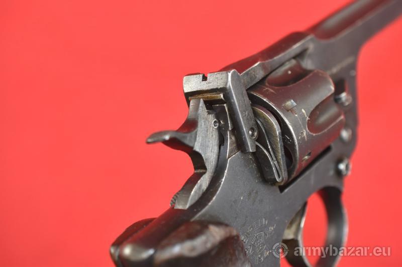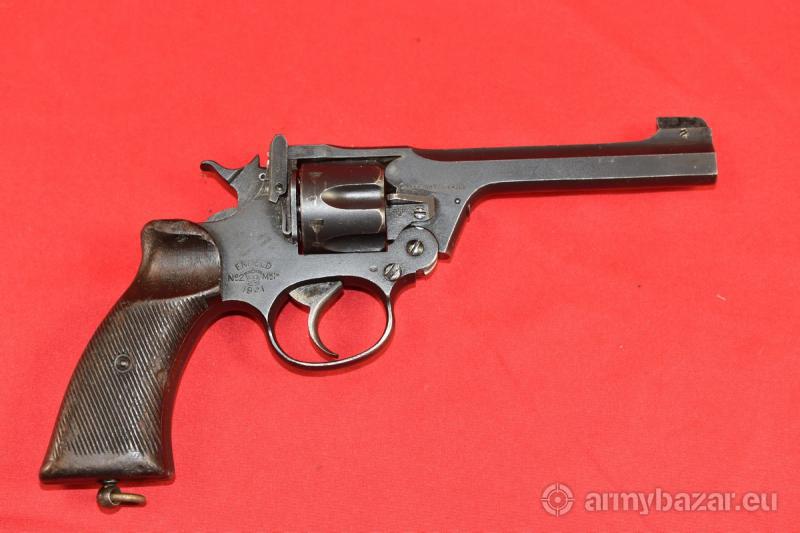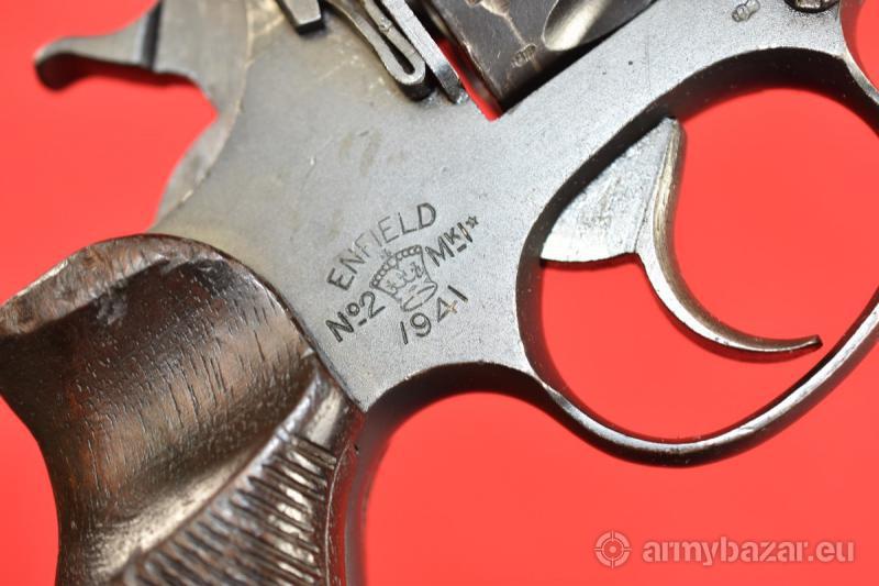 Opis: #7682 Brytyjski rewolwer wojskowy Enfield No2 Mk1*. Produkcja z roku 1941. Egzemplarz w oksydzie wtórnej, remontowej. Zgodny numerycznie. O tym, że przechodził remont wskazuje także to, że wymieniono w nim kurek i zmodyfikowano go do systemu double action, tak jak było to w poprzednim wariancie No2Mk1 (bez gwiazdki). Przewód lufy: praktycznie idealny. BROŃ DOWOZIMY NA TERENIE CAŁEGO KRAJU - RAZ W MIESIĄCU