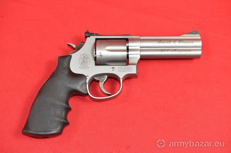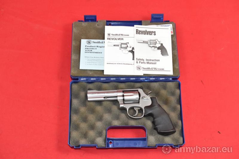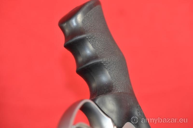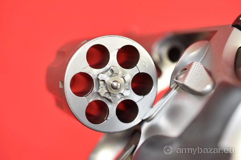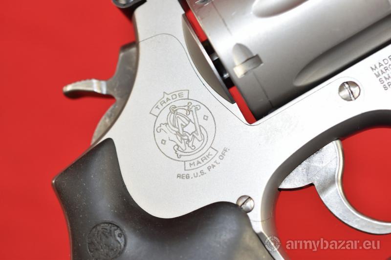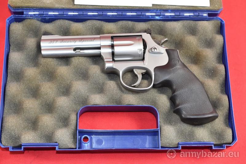 Opis: #7684 Rewolwer Smith & Wesson 686-5 Security Special kal. .357 Magnum / .38 Special - na fakturze będą podane oba kalibry. Stan bardzo dobry, obecne ślady normalnej, umiarkowanej eksploatacji. Okładziny gumowe oryginalne, fabryczne. Stal nierdzewna wykończona na odcień satynowy. Szczerbinka regulowana w pionie i w poziomie. System SA/DA, bębenek sześcionabojowy, lufa 4 cale. Przewód lufy idealny, fabryczny. BROŃ DOWOZIMY NA TERENIE CAŁEGO KRAJU - RAZ W MIESIĄCU