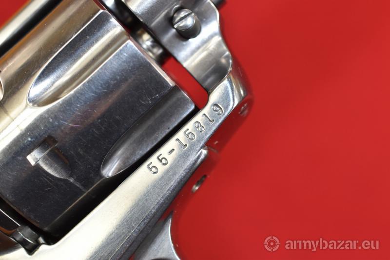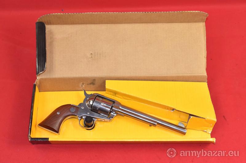 Opis: #7685 Rewolwer Ruger Vaquero kal.45 Long Colt. Stan bardzo dobry, obecne są tylko minimalne ślady normalnej eksploatacji. Rok produkcji 1994. Stal nierdzewna na wysoki połysk. Lufa długości 7-1/2 cala, bębenek sześcionabojowy. System SAO. Widoczne na zdjęciach zarysowania spowodowane są odblaskiem od lampy błyskowej, który na tego typu powierzchni "wyciąga" nawet niewidoczne gołym okiem ślady obróbki fabrycznej. W rzeczywistości trzeba się dobrze naszukać, by jakiekolwiek zadrapania czy przetarcia tutaj znaleźć. Przewód lufy: w stanie idealnym, fabrycznym. BROŃ DOWOZIMY NA TERENIE CAŁEGO KRAJU - RAZ W MIESIĄCU