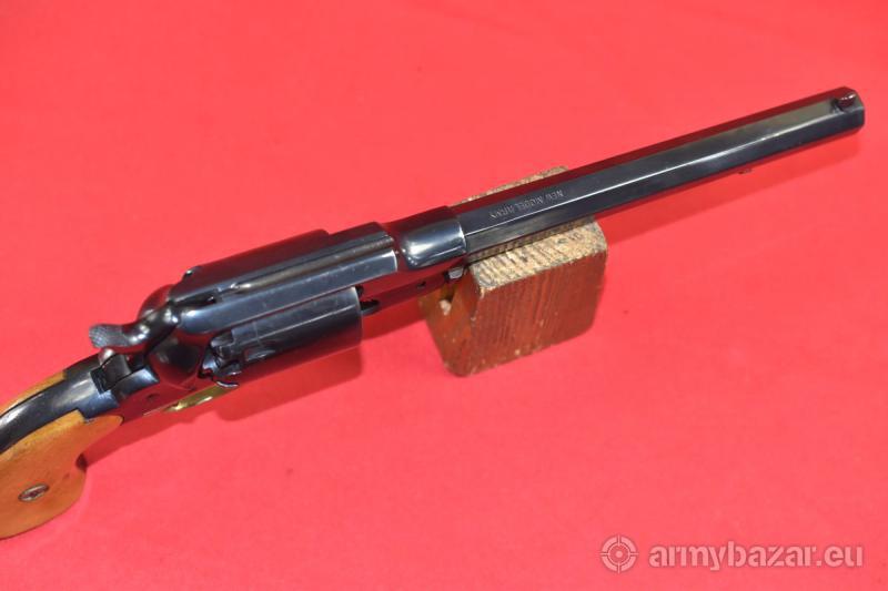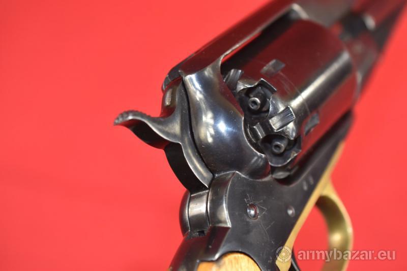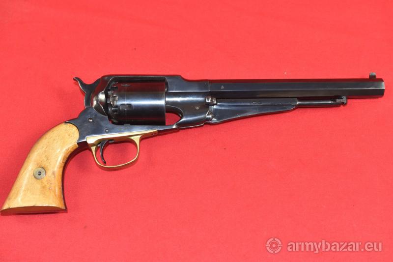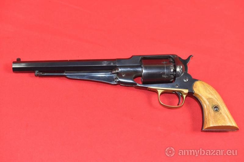 Opis: #7691 Rewolwer rozdzielnego ładowania Remington New Model Army 1858 kal. 44. Wyprodukowany w latach 1970-1975 przez hiszpańską firmę Santa Barbara. Łącznie powstało tam 16.500 sztuk rewolwerów tego modelu. Naprawdę ładny egzemplarz. Przewód lufy: fabryczny. Osiowość: 95%