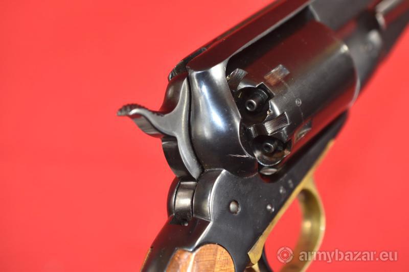 Opis: #7692 Rewolwer rozdzielnego ładowania Remington New Model Army 1858 kal. 44. Wyprodukowany w latach 1970-1975 przez hiszpańską firmę Santa Barbara. Łącznie powstało tam 16.500 sztuk rewolwerów tego modelu. Naprawdę ładny egzemplarz. Naprawdę ładny egzemplarz. Przewód lufy: fabryczny. Osiowość: 95% PRODUKT DOSTĘPNY WYSYŁKOWO DLA OSÓB PEŁNOLETNICH NA ZAKUP TEJ BRONI NIE JEST WYMAGANE ZEZWOLENIE