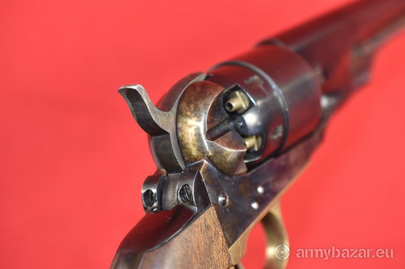 Opis: #7694 Rewolwer rozdzielnego ładowania Centaure Remington New Model Army kal. 44. Typ pierwszy, wariant drugi - według klasyfikacji zamieszczonej na stronie: https://1960nma.org/chapter-3/3-2-rnma/ - produkowany w latach 1961 - 1973. Długość lufy 8 cali. W dolnej części chwytu obecny jest stempel "B.Harlos Rieden" - niemieckiego importera tych rewolwerów. Ładnie zachowana sztuka, wykazująca ślady normalnego, umiarkowanego użytkowania. Przewód lufy: idealny. PRODUKT DOSTĘPNY WYSYŁKOWO DLA OSÓB PEŁNOLETNICH NA ZAKUP TEJ BRONI NIE JEST WYMAGANE ZEZWOLENIE