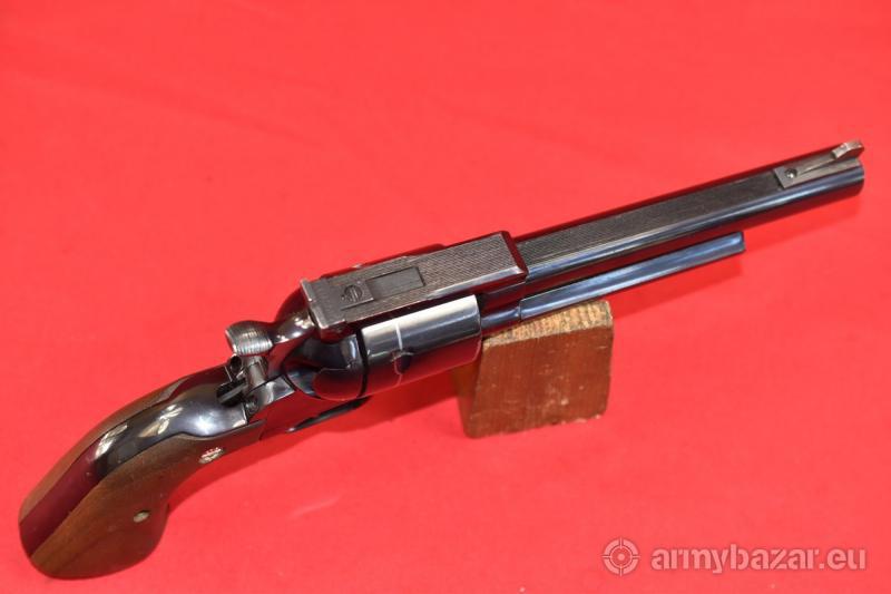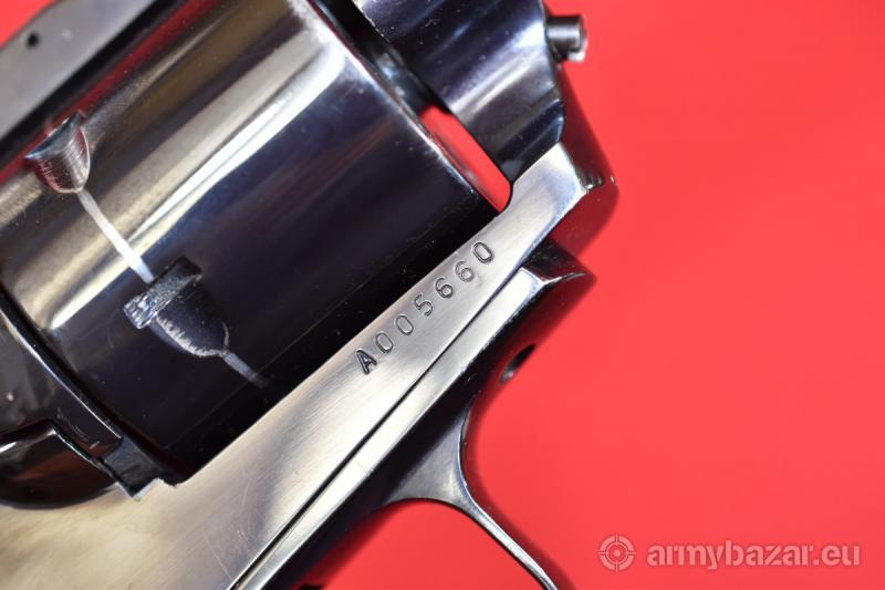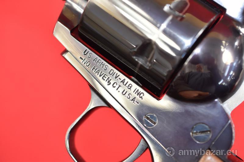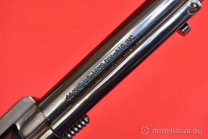 Opis: #7704 Rewolwer Abilene kal. .44 Magnum. Bardzo rzadko występujący rewolwer produkcji amerykańskiej firmy US Arms Div.-A.I.G. Inc. Model produkowany w latach 1972-1983. Oferowany tutaj egzemplarz pochodzi z końcowego okresu produkcji, czyli z okresu 1980-1983 (o czym świadczy prefiks numeru seryjnego w postaci litery "A"), gdy w/w firma została przejęta przez Mossberg & Sons Inc. Zachowany w znakomitym stanie. Bębenek sześcionabojowy, długość lufy 6-1/2 cala. Szczerbinka regulowana w pionie i w poziomie. System SA. Długość całkowita: 31cm, wysokość 15cm.. Przewód lufy: fabryczny. BROŃ DOWOZIMY NA TERENIE CAŁEGO KRAJU - RAZ W MIESIĄCU