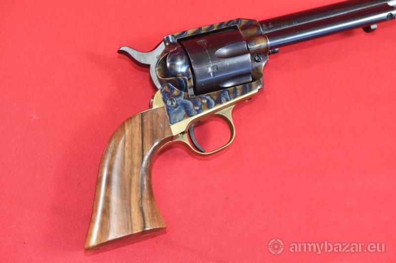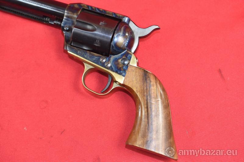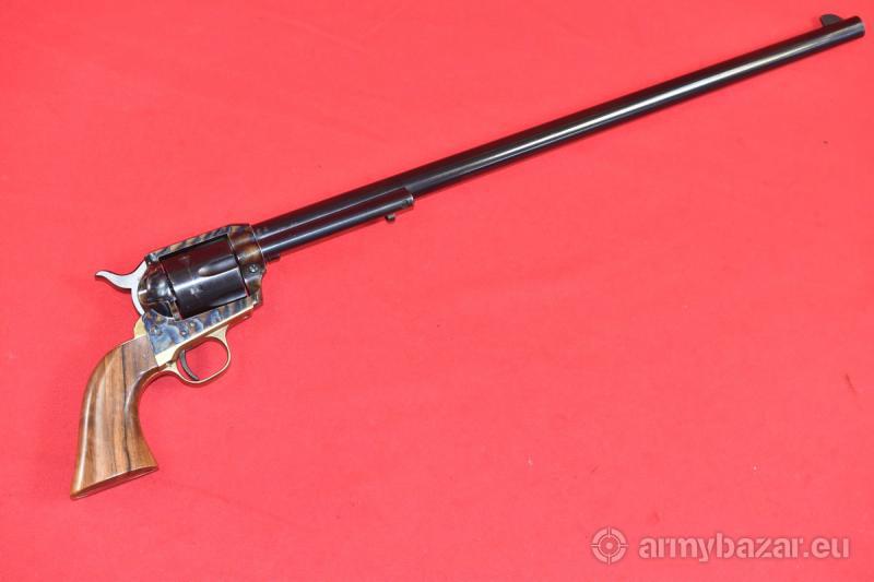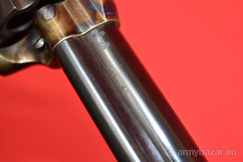 Opis: #7710 Rewolwer Amercian Buntline kal..45 Long Colt. Produkcja włoska z roku 1972 firmy Uberti - na zamówienie niemieckiego importera Hege. Lufa o imponującej długości 18 cali (!), bębenek sześcionabojowy, system SAO. Pięknie zachowany egzemplarz. Na bębnie ledwie widoczna rysa obwiedniowej - co świadczy o tym, że ten egzemplarz był bardzo mało używany. Na szkielecie świetnie zachowane, piękne oksydowanie ogniowe. Przewód lufy - w stanie fabrycznym. BROŃ DOWOZIMY NA TERENIE CAŁEGO KRAJU - RAZ W MIESIĄCU