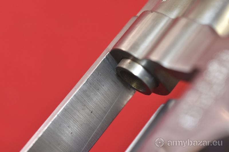 Opis: Mało używany egzemplarz, w bardzo dobrym stanie. O jego stanie świadczy stan ramy w pobliżu wlotu lufy - nie ma na niej śladu wypalenia od strzelania amunicją .357 Magnum. Regulowana szczerbinka mikrometryczna. Na zdjęciach, rozjaśnionych lampą, widać zadrapania i przetarcia powierzchni, które w zdecydowanej większości nie są widzialne gołym okiem. Okładziny oryginalne, wykonane z drewna palisandrowego. Lufa długości 2-1/2 cala, bębenek sześcionabojowy, system SA/DA. Stal nierdzewna. Egzemplarz sprawdzony i wypróbowany przez rusznikarza. Przewód lufy: praktycznie idealny, fabryczny. Patrz zdjęcia. BROŃ DOWOZIMY NA TERENIE CAŁEGO KRAJU - RAZ W MIESIĄCU