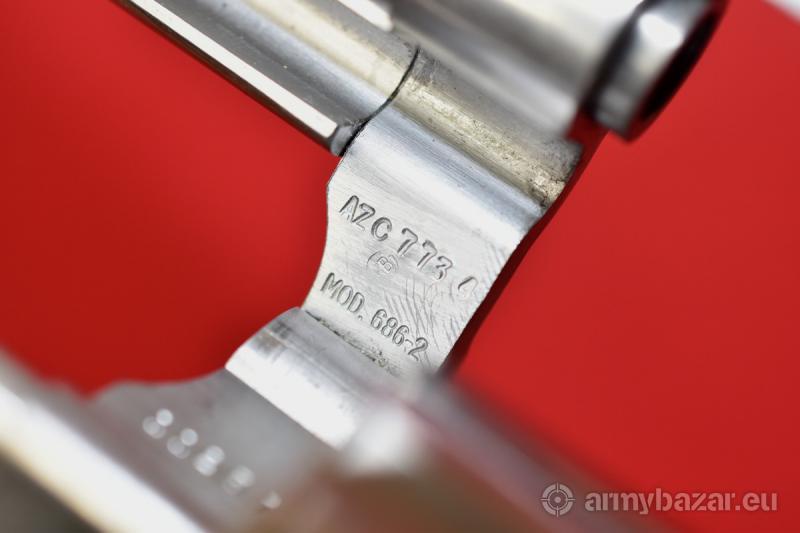 Opis: #8388 Rewolwer Smith & Wesson 686-2 kal. 357 Magnum/.38Spl. Na fakturze będą oba kalibry. 686-2 produkowany był w latach 1987-1988. Mało używany egzemplarz, w bardzo dobrym stanie. O jego stanie świadczy stan ramy w pobliżu wlotu lufy - nie ma na niej śladu wypalenia od strzelania amunicją .357 Magnum. Egzemplarz sprawdzony i wypróbowany przez rusznikarza. Przewód lufy: praktycznie idealny, fabryczny. Patrz zdjęcia. BROŃ DOWOZIMY NA TERENIE CAŁEGO KRAJU - RAZ W MIESIĄCU