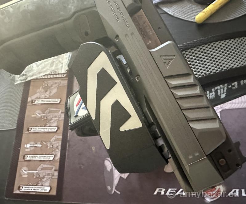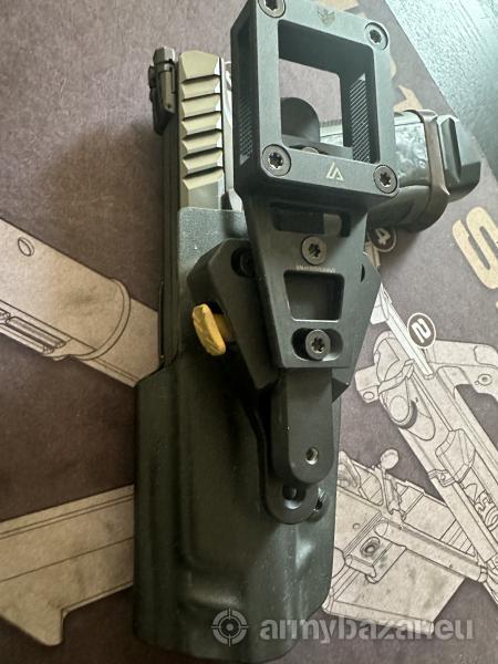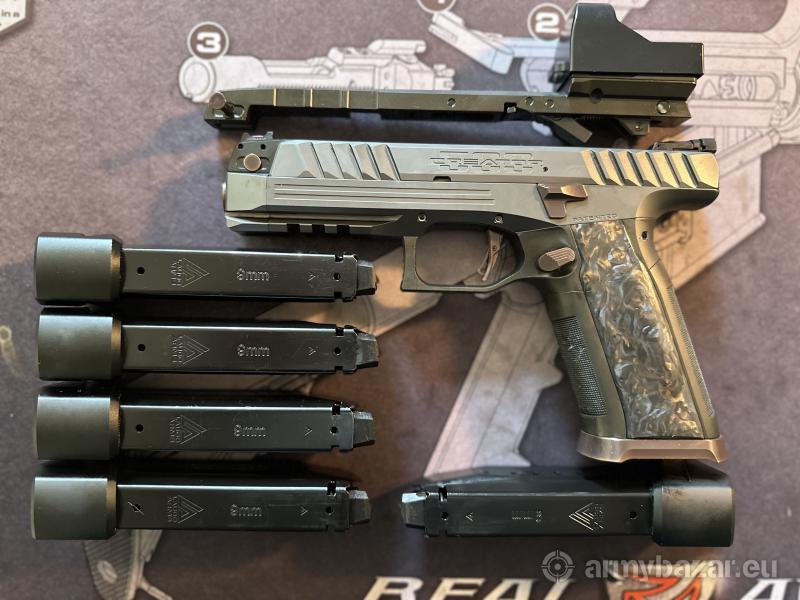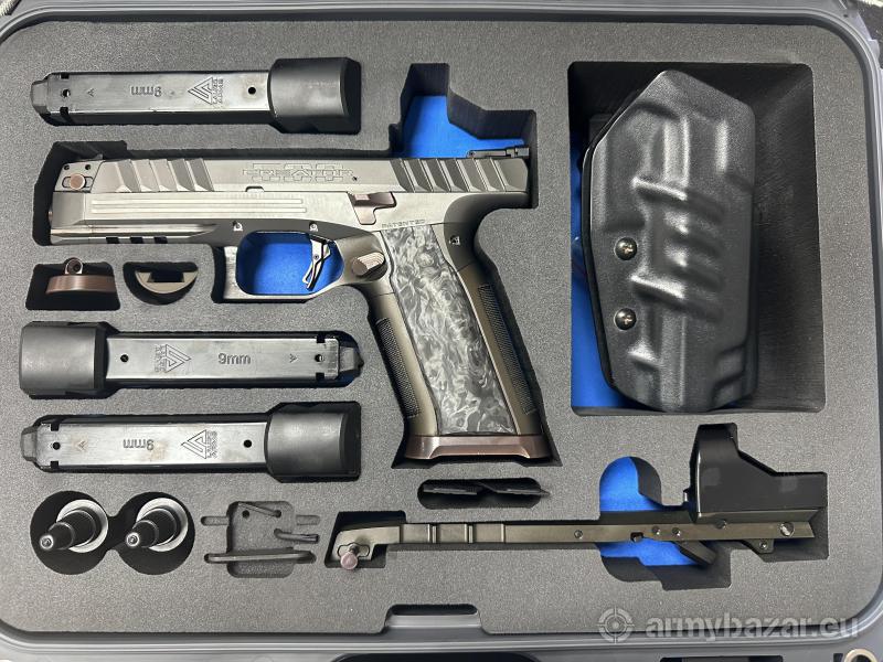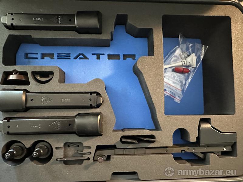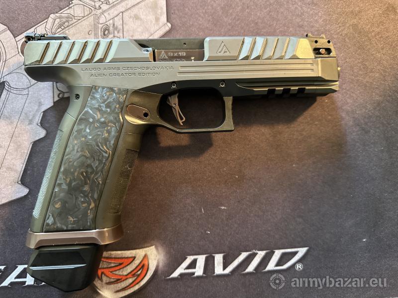 Opis: Alien Creator Edition Full Kit - limitowany tylko 500 egz. kupiony u polskiego dystrybutora stan bdb wyjątkowe fabryczne malowanie i wykończenie przelot ok. 1000 szt. wymienne okładziny chwytu kat chwytu jak w 1911 gwarancja do grudnia 2025 r. dodatkowo dedykowana kabura i blok do wieszaka DAA 5 mag dokument zakupu