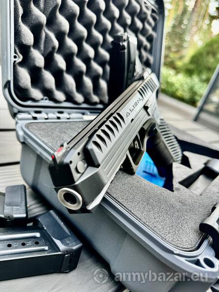 Opis: Sprzedam Alien Performance + dodatkowy ewentualnie zamek Retro (nowy dodatkowe 3000 PLN) . Idealne do IPSC (w tym IPSC production Optics). Wszystko w zestawie na jedną promesę ! Dodatkowo 6 magazynków ! Broń w idealnym stanie. Praktycznie nowa. Siedzi głównie