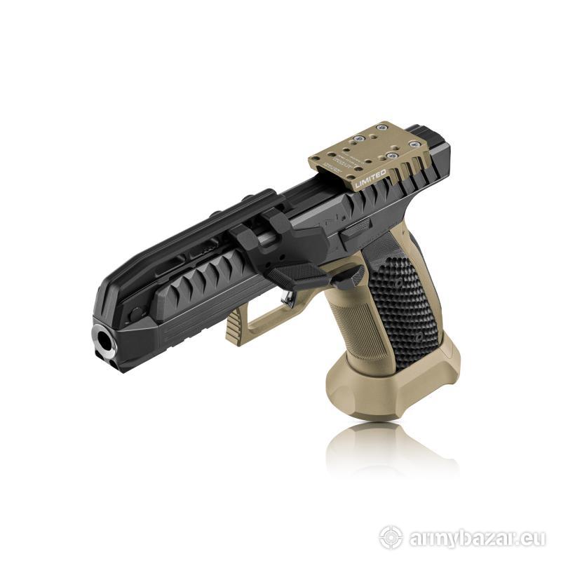 Opis: Do sprzedania nowy pistolet Alien Limited Optic. Wystawiam Fakturę VAT. Pistolet Alien w tej wersji w zestawie: - Cordurowy pokrowiec Elornis Industry, - Pistolet z zamkiem Limited Optics z montażem umożliwiającym założenie różnych modeli kolimatorów, - Górna szyna z półka pod kciuk (Thumb rest), - Lejek XL. UWAGA: zestaw nie zawiera ani żadnych magazynków czy kabury.
