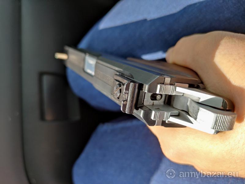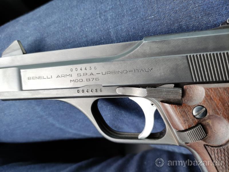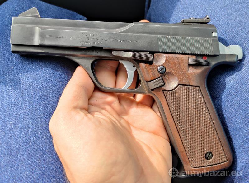 Opis: Bardzo rzadki pistolet działający według opatentowanej przez Benelli metody ryglowania. Części mechaniczne i lufa chromowane. Stan idealny