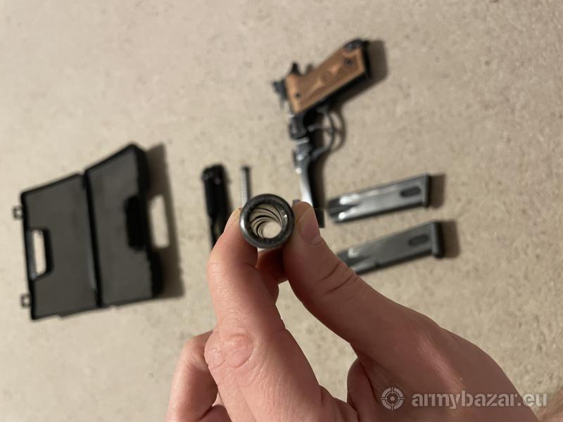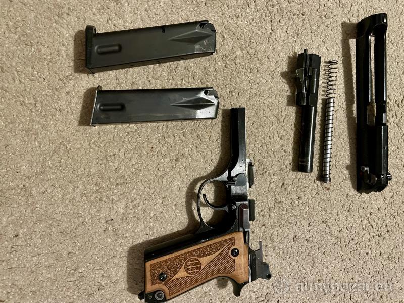 Opis: Beretta 92S 9mm – pistolet w bardzo dobrym stanie technicznym Sprzedam pistolet Beretta 92S w kalibrze 9x19mm. Broń zadbana, w pełni sprawna, użytkowana okazjonalnie. W zestawie dwa magazynki (jeden oryginalny, drugi z Beretty FS/S z plastikową stopką). Dane techniczne: Model: Beretta 92S Kaliber: 9x19mm (9mm Parabellum) Mechanizm: SA/DA (Single/Double Action) Magazynek: 15-nabojowy Bezpiecznik z dekokerem na zamku Okładziny drewniane z logo (Orzech)