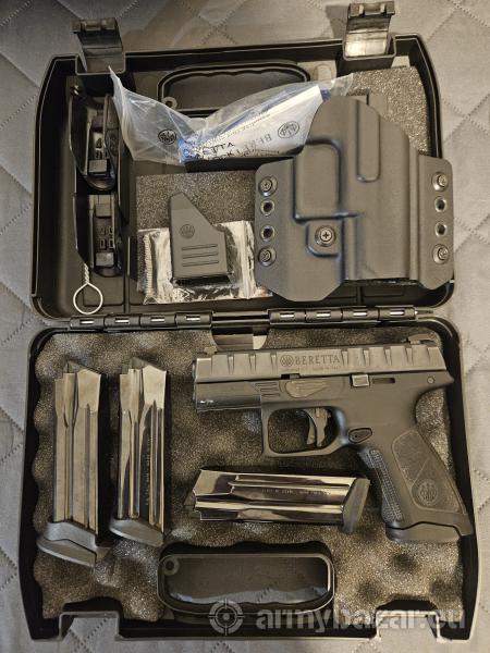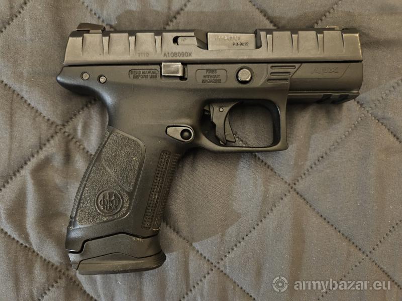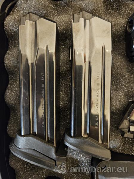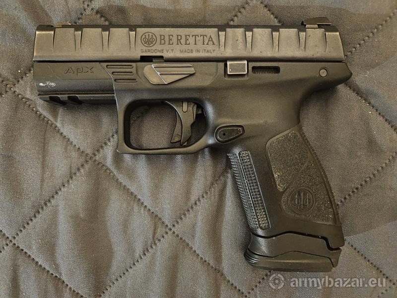 Opis: Sprzedam Berette APX CENTURION przebieg około 500 szt. wymieniona sprężyna na zieloną (czarna w komplecie), cztery magazynki (3 15 nab. jeden 17 nab.), plus kabura