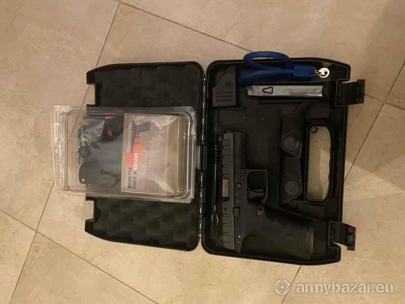 Opis: Sprzedam pistolet Beretta APX 9x19, w skład kompletnego zestawu wchodzą: (2 metalowe magazynki, walizka-pudełko, blokada, wymienne nakładki na chwyt, ładowarka, wycior oraz instrukcja instrukcja obsługi), dodatkowo oryginalna kabura od Beretty z 2-ma wymiennymi mocowaniami do pasa strzeleckiego oraz uniwersalne. Wystrzelono około 350 naboi. Broń jest w stanie idealnym. Do obejrzenia i odbioru w Bielsku-Białej lub na trasie do Katowic. tel.601489285