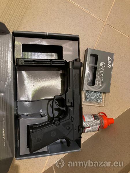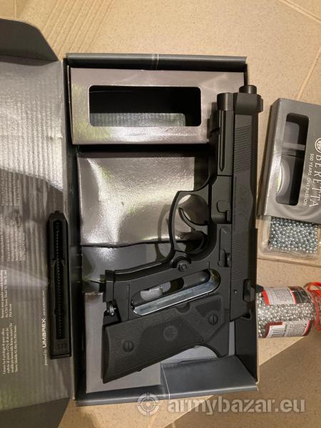 Opis: Na sprzedaż prawie nowa wiatrówka Beretta. Wystrzelone dosłownie kilkadziesiąt kulek. Sprzedaję ze względu na brak zainteresowania do strzelania. Opis poniżej. Naboje CO2 na innej aukcji. W komplecie to co na zdjęciach. Moge dorzucic kilka nabojów w cenie. Mozliwa wysyłka. W zestawie znajduje się: - wiatrówka, - paczka śrutu BB, o wartości 25zł Dane techniczne Kaliber: 4,5 mm (.177) Typ śrutu: 4,46 mm (BB) Napęd: 12 g nabój CO2 Materiał wykonania: tworzywo sztuczne Długość całkowita: 215 mm Pojemność magazynka: 18 kulek Prędkość początkowa: 125 m/s Waga: 690 g Producent: Umarex, Niemcy
