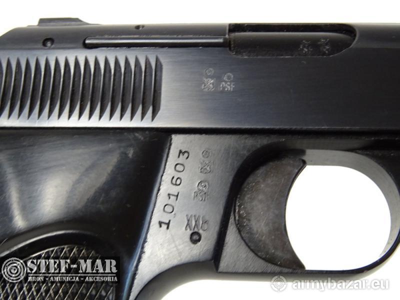 Opis: Broń używana, sprawna w 100%. Włoski pistolet produkowany na wzór Walthera PP. Stan broni dobry, jak przedstawiony na zdjęciach. Stan lufy jest dobry, gwint wyraźny. Broń po przeglądzie rusznikarskim, przestrzelona na strzelnicy. Dane techniczne broni: - dł całk: 166mm - dł lufy: 88mm - waga: 516g Do broni dołączam fakturę VAT/fakturę VAT marża. W razie pytań proszę dzwonić właściciel 501 682 999, biuro 516 904 226 Możliwość dostarczenia broni we wcześniej uzgodnione miejsce w kraju. BROŃ OSTRA! Wymagane jest pozwolenie na broń. Nr broni: 101603 Nr kat: C1187