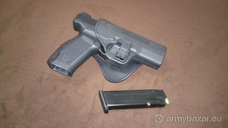 Opis: Witam, sprzedam pistolet Canik TP9v2, kaliber 9x19, rok produkcji 2016, wystrzelone ok 300 szt. amunicji. W zestawie: pistolet, 2 magmagazynki, kabura, szybkoładowarka (maglula) nakladka powiększająca chwyt i pudełko. Kupiony nowy w marcu 2017. Potrzebuje uwolnić promese. Nosi nieznaczne ślady użytkowania. Cena do rozsadnej negocjacji