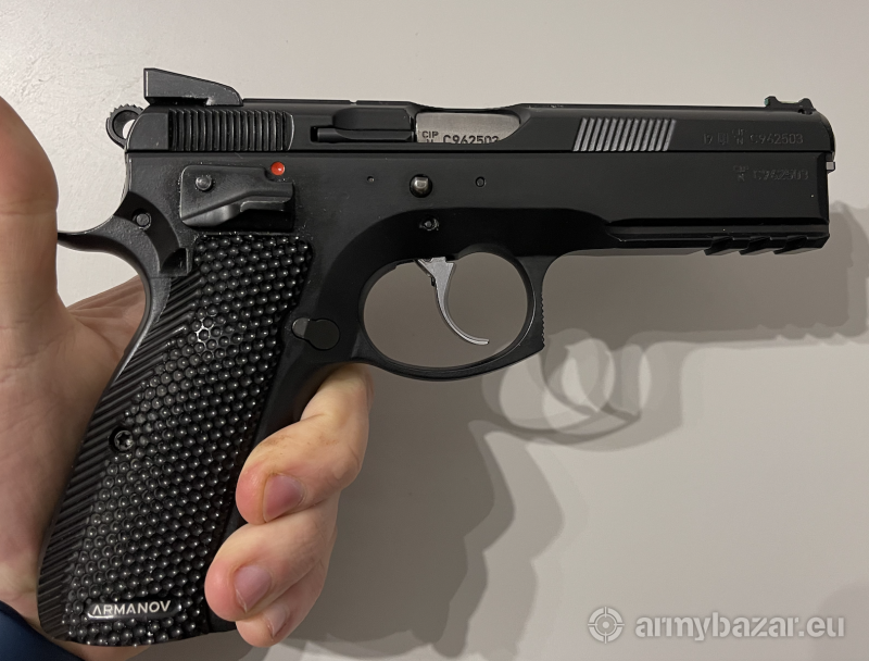 Opis: Sprzedam CZ75 SP-01 Shadow, przelot około 1500 sztuk. Rok produkcji 2019. W zestawie walizka, trzy magazynki. Pistolet ma założone okładki Armanova, oryginalne dorzucam. Wymienione sprężyny.