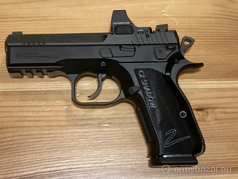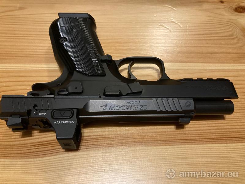 Opis: Sprzedam CZ Shadow 2 Carry, kal. 9x19, wystrzelone 100 szt. Pistolet kupiłem rok temu, bo zauroczyła mnie jego estetyka, jednakże jestem strzelcem stricte sportowym i nijak się nie dogadaliśmy w tej kwestii. Po przetestowaniu możliwości w IDPA postawiłem na inną platformę (nie SA/DA) i leży w szafie. Stan sklepowy. Strzelałem tylko z jednego magazynka, Drugi nie używany. Komplet z saszetką, papierami i wszystkim co wyszło z fabryki. Muszka/szczerbinka stalowe, luminescencyjne. Kolimator Vortex Defender CCW z kropką 6 MOA ustawiony na 15 metrów - nie wchodzi w cenę zestawu ale jak ktoś sobie życzy to mogę go zostawić za dopłatą 900,00 zł. Lufa z dożywotnią gwarancją CZ.