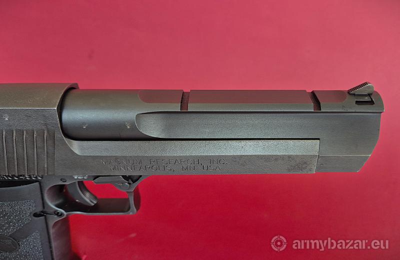 Opis: Desert Eagle .44 Magnum. wyprodukowany w 1997 w Magnum Research w USA Minneapolis . Różni się od Izraelskiego emblematem Pustynnego Orła na rękojeściach szyną na lufie oraz większymi manipulatorami bezpieczników ( Półkami). Pistolet kolekcjonerski w stanie bliskim ideału.