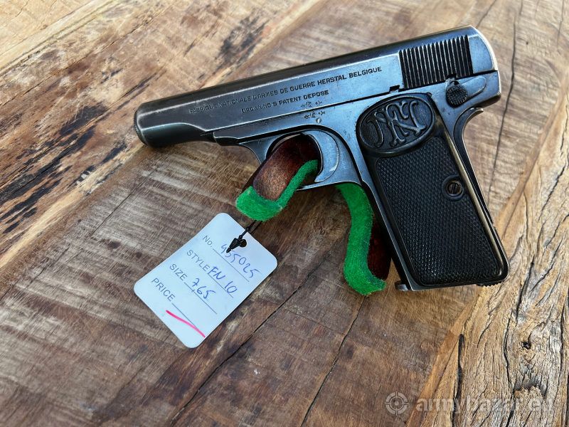 Opis: FN 1910, 7,65 mm Browning, czyli klasyczny pistolet samopowtarzalny konstrukcji Johna Browninga. W rękach Gavrilo Principa posłużył do zabicia arcyksięcia Franciszka Ferdynanda, co było bezpośrednią przyczyną wybuchu I wojny światowej. Egzemplarz w oryginalnym stanie zachowania, zgodny numerycznie, z ładną lufą. SKLEP Z BRONIĄ WWW.GLMILITARIA.COM
