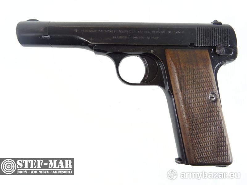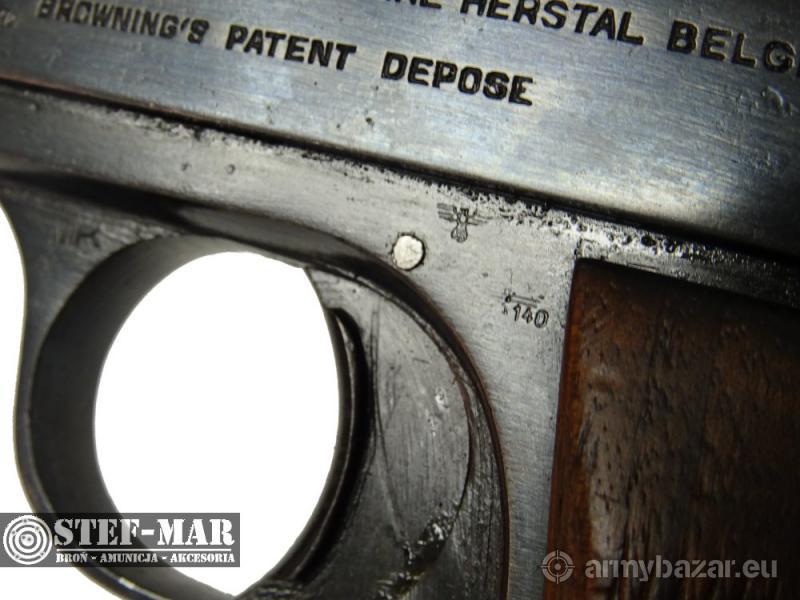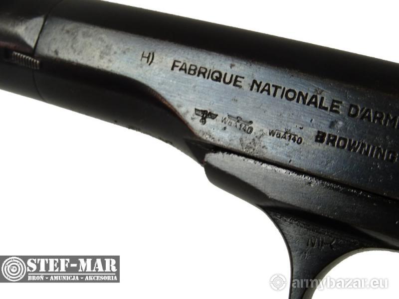 Opis: Broń używana, sprawna w 100%. Pistolet belgijski, większy model 1910, używany w zamachu na arcyksięcia w Sarajewie w 1914 roku. Stan broni łądny, jak przedstawiony na zdjąciach. Stan lufy jest niestety nie najlepszy, wżerki na całej długości i na komorze.. Broń po przeglądzie rusznikarskim, przestrzelona na strzelnicy. Dane techniczne broni: - dł całk: 180mm - dł lufy: 111mm - waga: 662g Do broni dołączam fakturę VAT/fakturę VAT marża. W razie pytań proszę dzwonić właściciel 501 682 999, biuro 516 904 226 Możliwość dostarczenia broni we wcześniej uzgodnione miejsce w kraju. BROŃ PALNA! Wymagane jest pozwolenie na broń. Nr broni: 153390 Nr kat: C3
