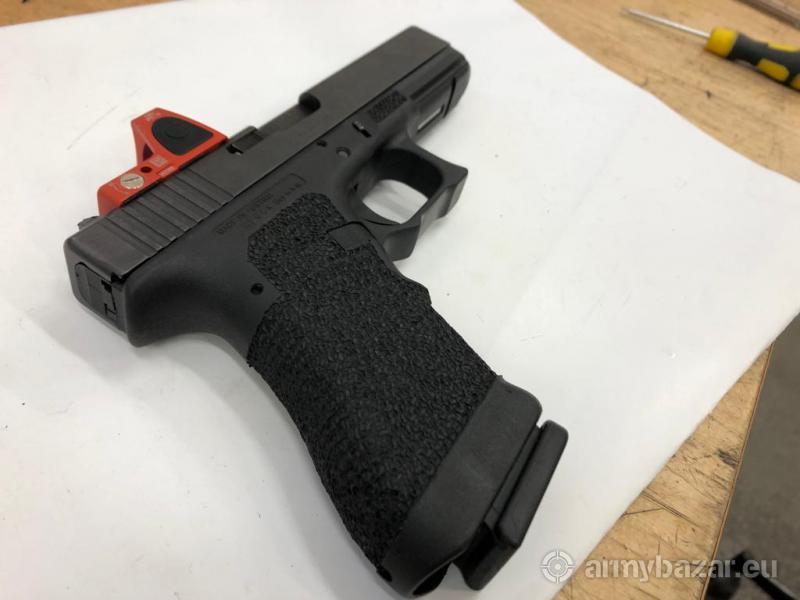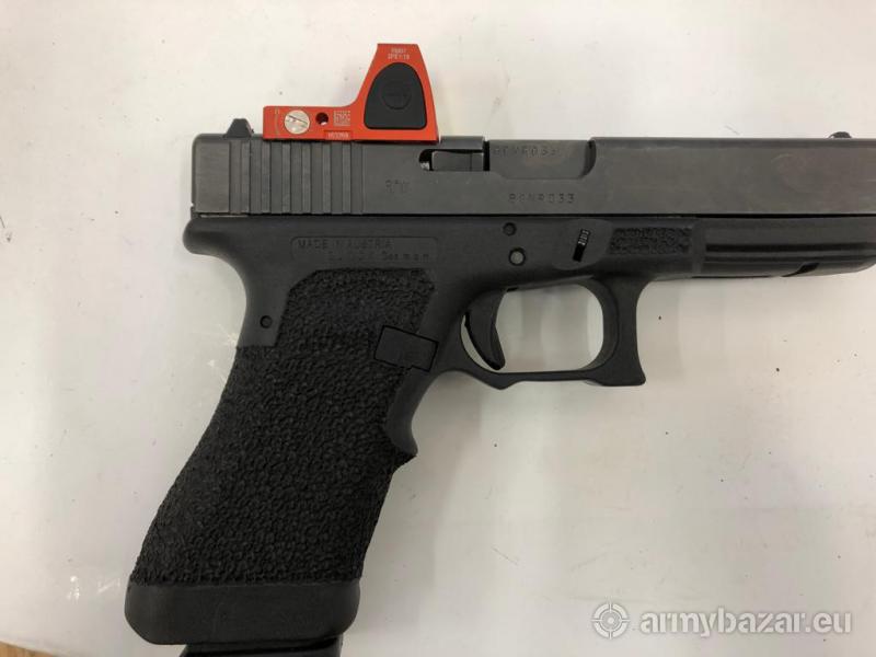 Opis: Glock 17 gen 3. Przerobiony przez rusznikarza pod kolimator Trijicon RMR bądź inny posiadający ten sam układ śrub mocujących.