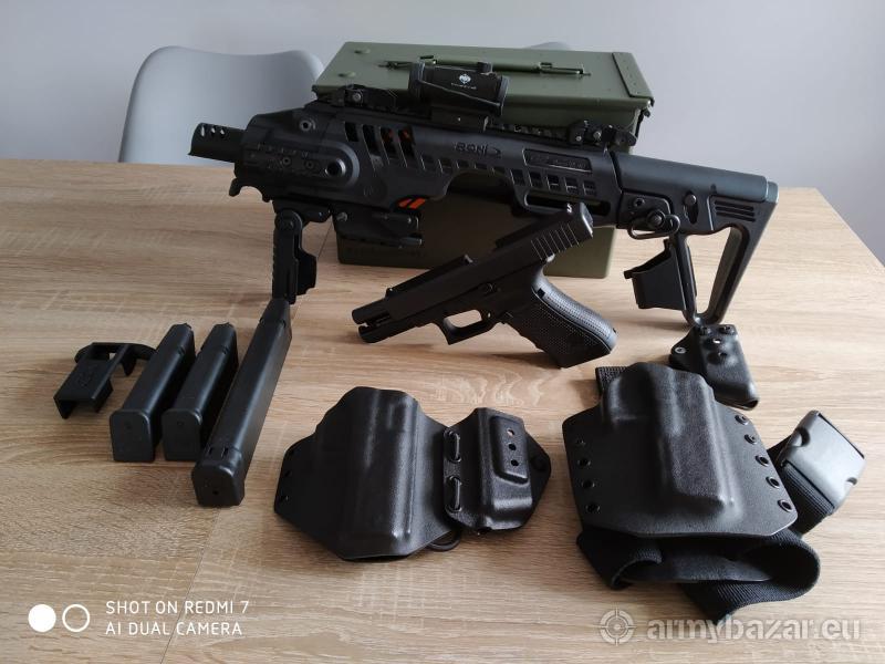 Opis: Witam do sprzedania posiadam broń palna Glock 17 gen 4 oraz konwersje firmy CAA RONI dedykowanej do Glocka 17 i 19. Glocka 17 bardzo dobrym stanie przebieg około 400 szt stan konwersji RONI również oceniam na ocenę bardzo dobra. W cenie całego zestawu wchodzi Glock 17 , konwersja CAA , 2 szt magazynki krótkie oraz jeden magazynek długi 32 szt , kabura udowa Kadexowa z możliwością przeniesienia na pas firmy REDRIVER , ładownica na jeden magazynek firmy REDRIVER , oraz kolimator firmy PWS. Uwaga interesuje moja osobę tylko sprzedaż całego zestawu więc proszę nie pisać o zakup oddzielnych podzespołów. Pozdrawiam Wojtek