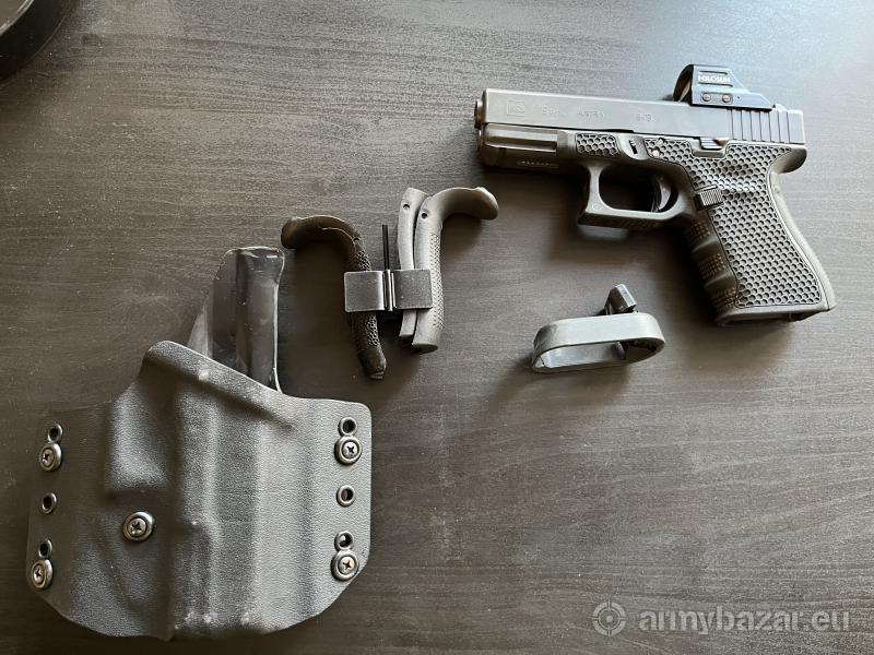 Opis: Sprzedam glocka 19 gen 4 z kolimatorem. Miał wykonany frez w rusznikarni. W zestawie dwa magazynki i kabura OWB. Więcej info udzielę na tel.